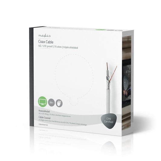 Nedis Coax Cable On Reel | RG58C/U | 50 Ohm | Double Shielded | ECA | 25.0 m | Coax | PVC | White | Gift Box