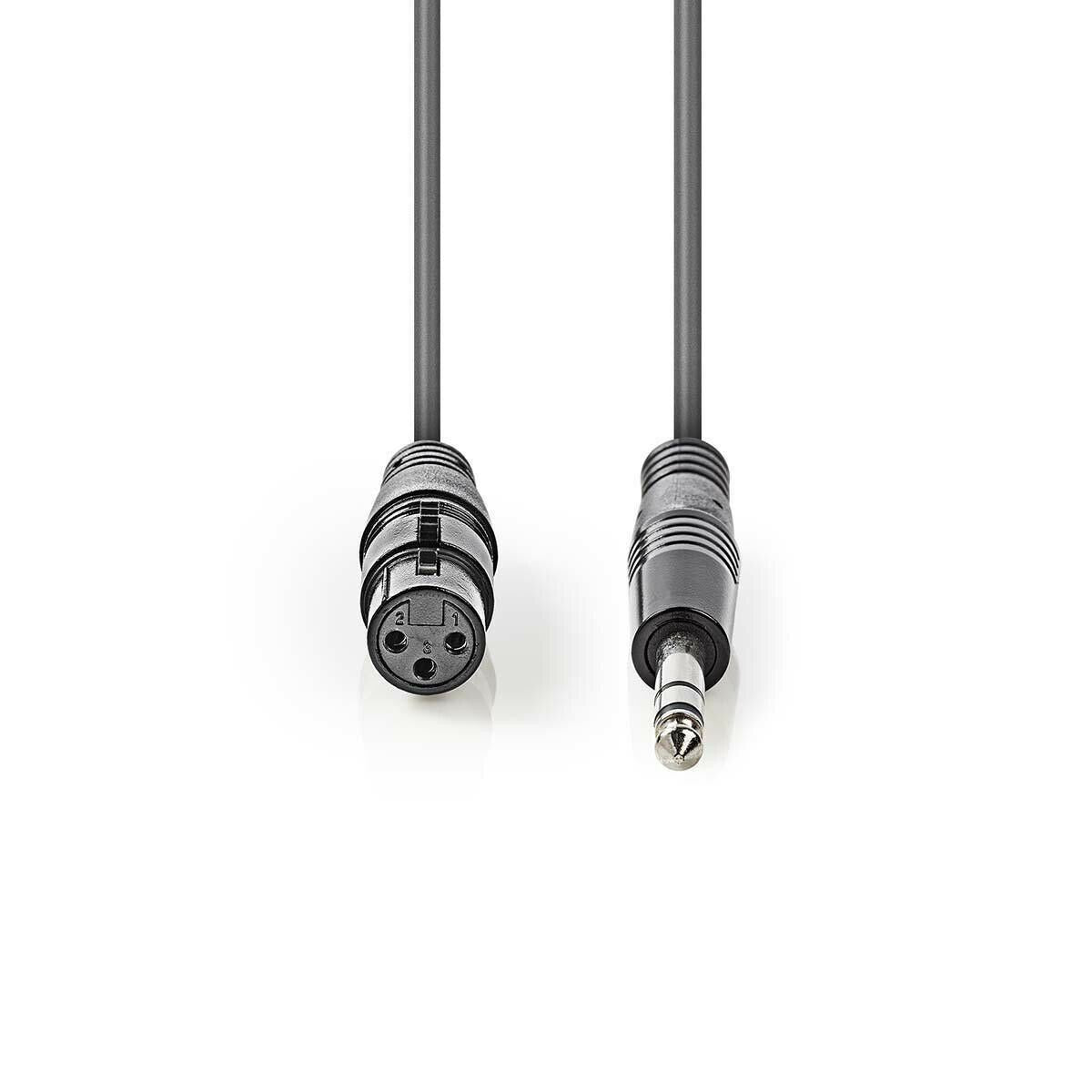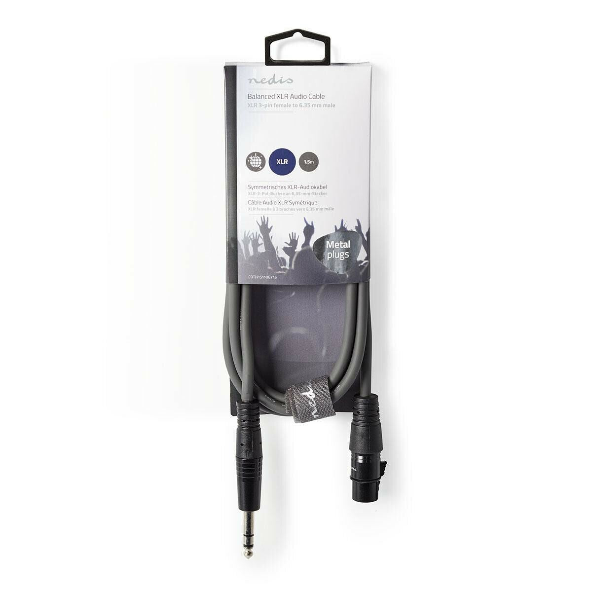 Nedis Balanced Audio Cable | XLR 3-Pin Female | 6.35 mm Male | Nickel Plated | 1.50 m | Round | PVC | Dark Grey | Carton Sleeve