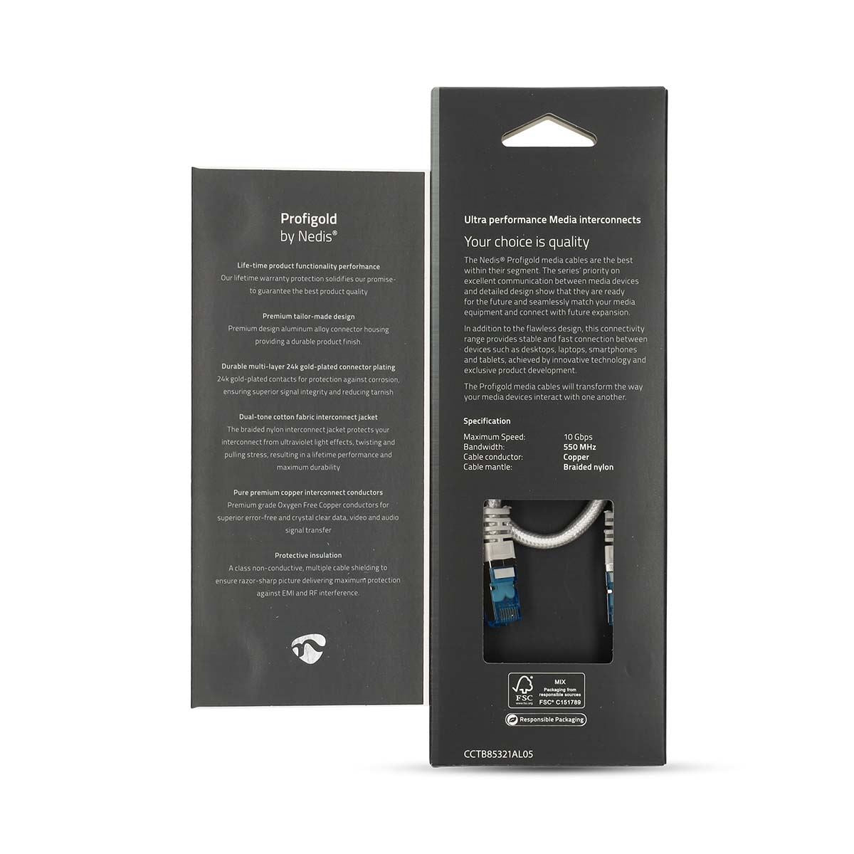 Nedis CAT6a Network Cable | S/FTP | RJ45 Male | RJ45 Male | 0.50 m | Snagless | Round | Braided / PVC | Silver | Cover Window Box