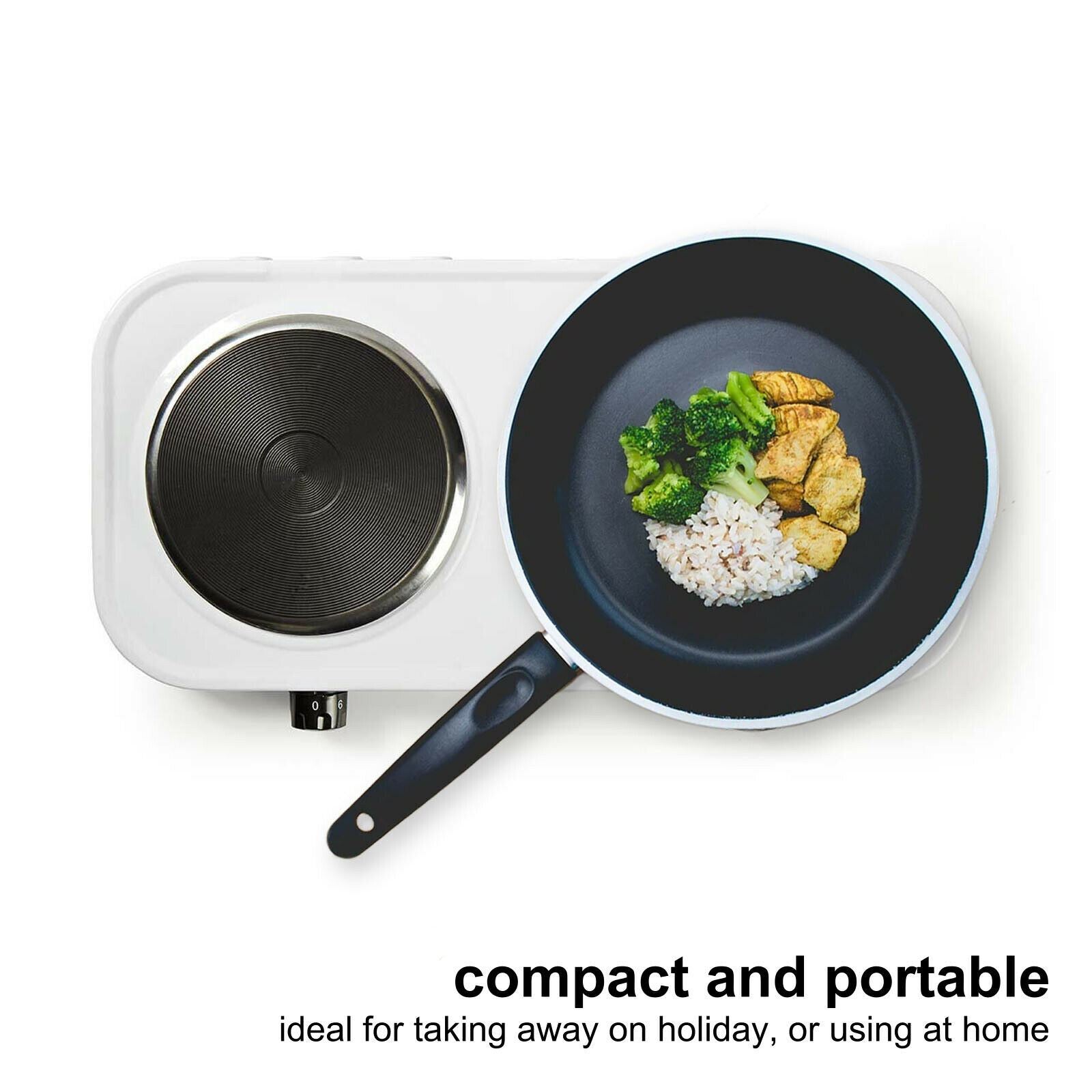 This compact and portable twin electrical hot plate is ideal for taking away on holiday, using at home as an additional cooking option or simply to keep your food warm when entertaining.