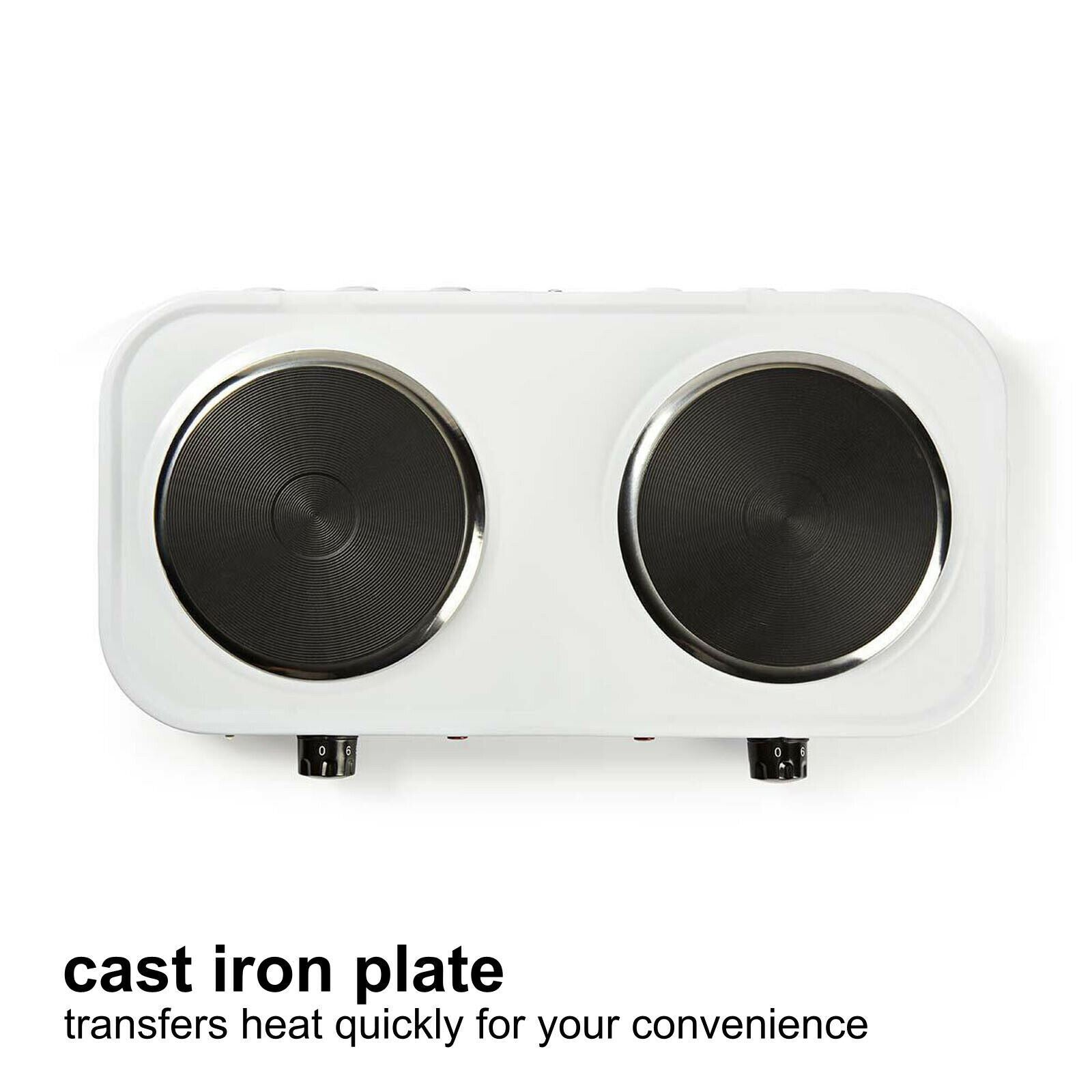 The 155 mm diameter of each cast iron plate transfers heat quickly for your convenience and the powder-coated steel housing is durable and easy to clean.