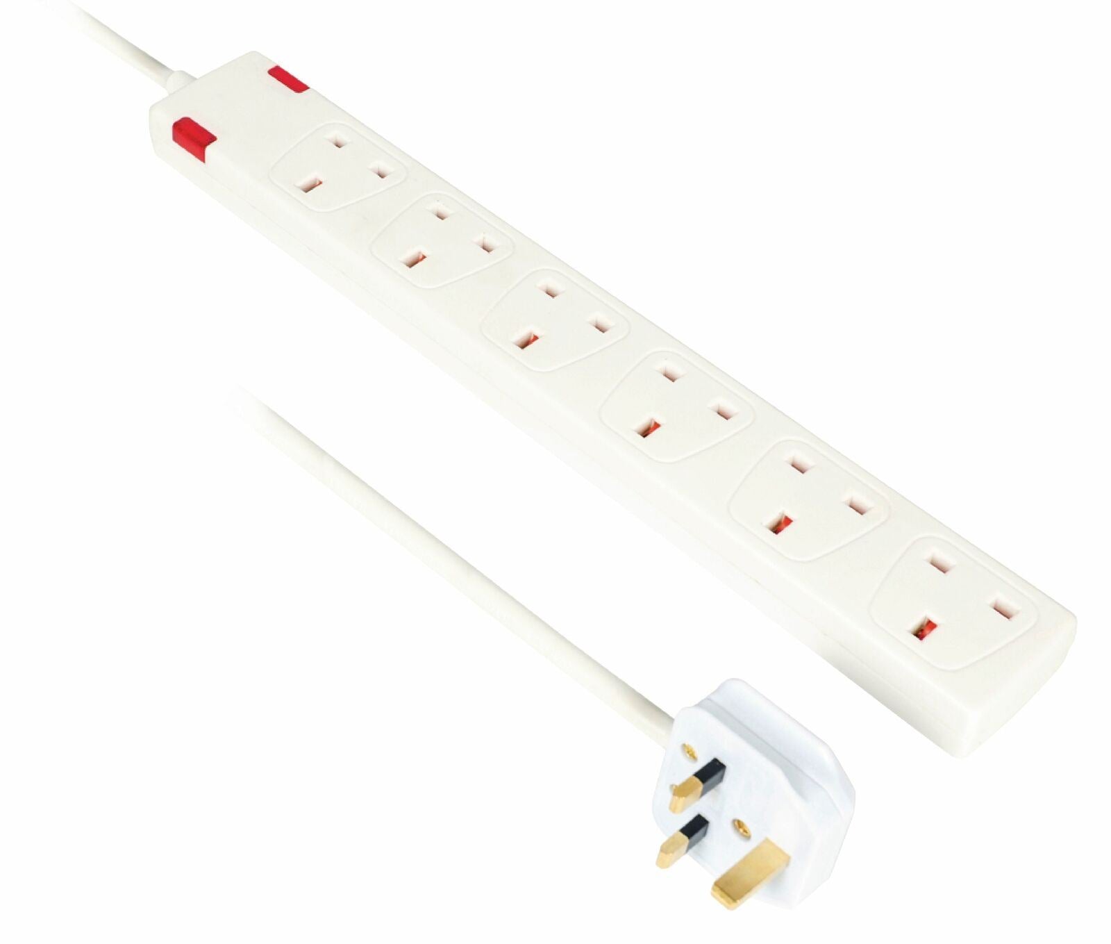 Nedis Extension Socket | Type G | 6-Way | 3.00 m | 3120 W | 13 A | Kind of grounding: UK Plug Earth pin | 230 V AC 50/60 Hz | Socket angle: 90 ° | H05VV-F 3G1.5mm² | White