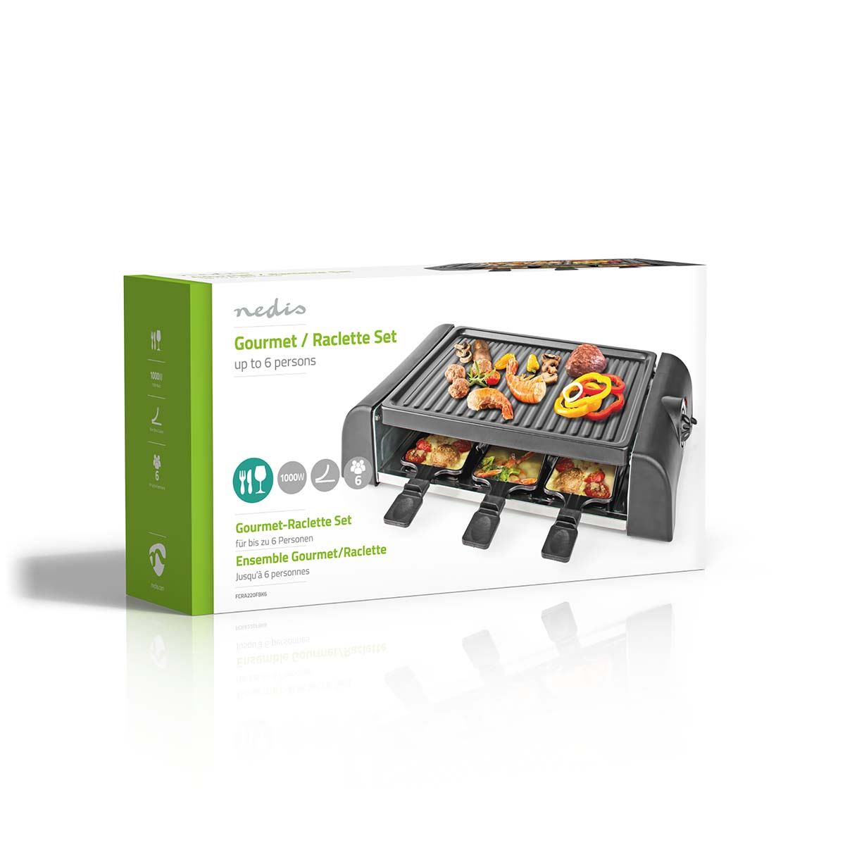 Nedis Gourmet / Raclette | Grill | 6 Persons | Spatula | Temperature setting | Non stick coating | Rectangle