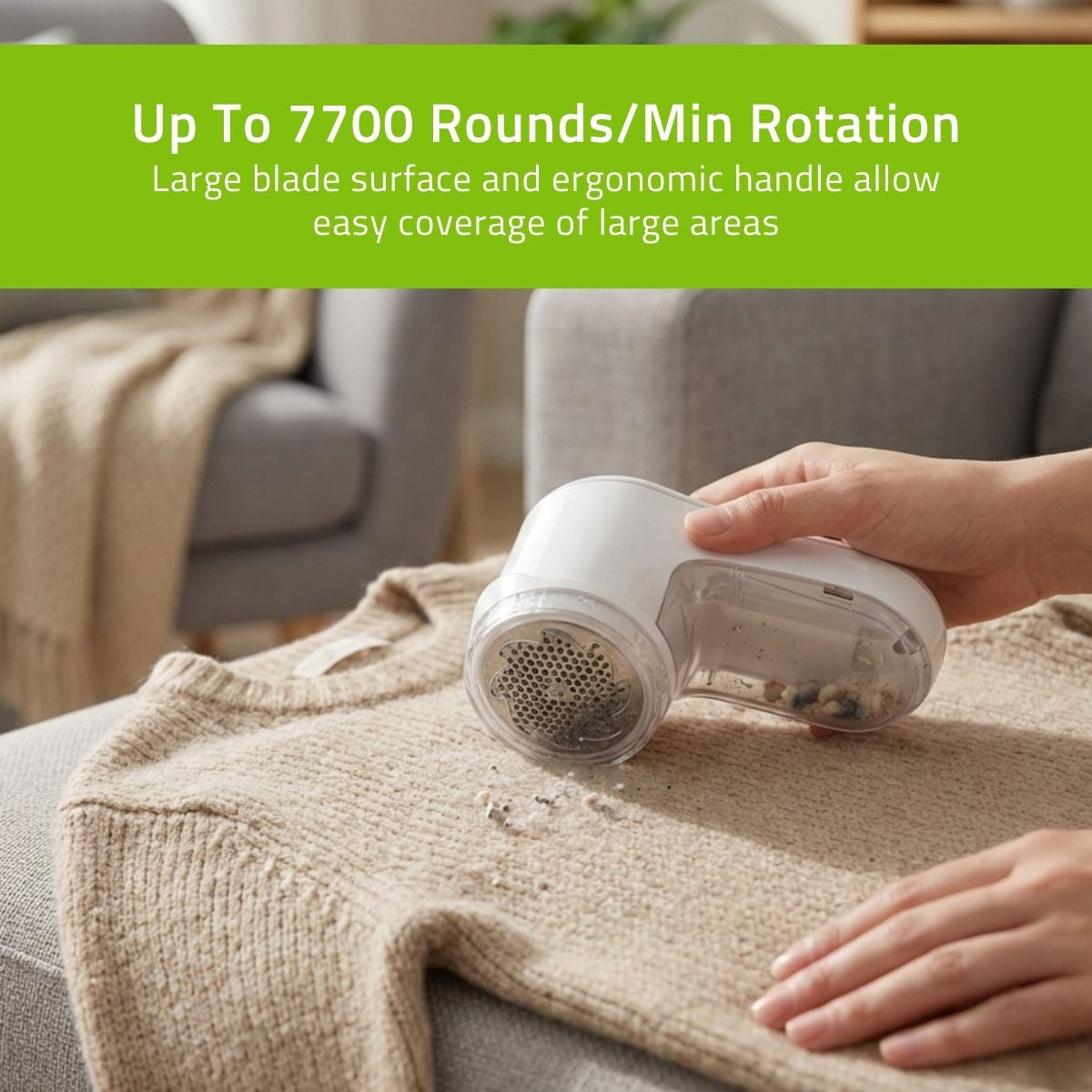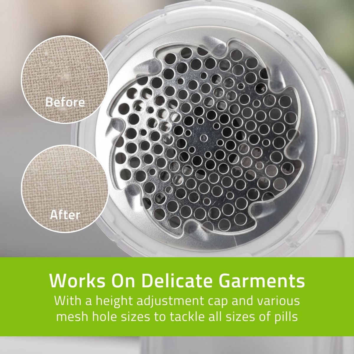 Equipped with a high-speed blade rotating at 7700 rounds per minute, this "debobbler" makes quick work of even the most stubborn fabric build-up. But power is nothing without control. With two adjustable speed settings and a specialised height adjustment cap, you can safely switch from heavy-duty blankets to your most delicate scarves without the worry of snags or damage. The smart mesh cover features various hole sizes, ensuring every single pill—from tiny fuzz to large bobbles—is captured in one smooth pass.