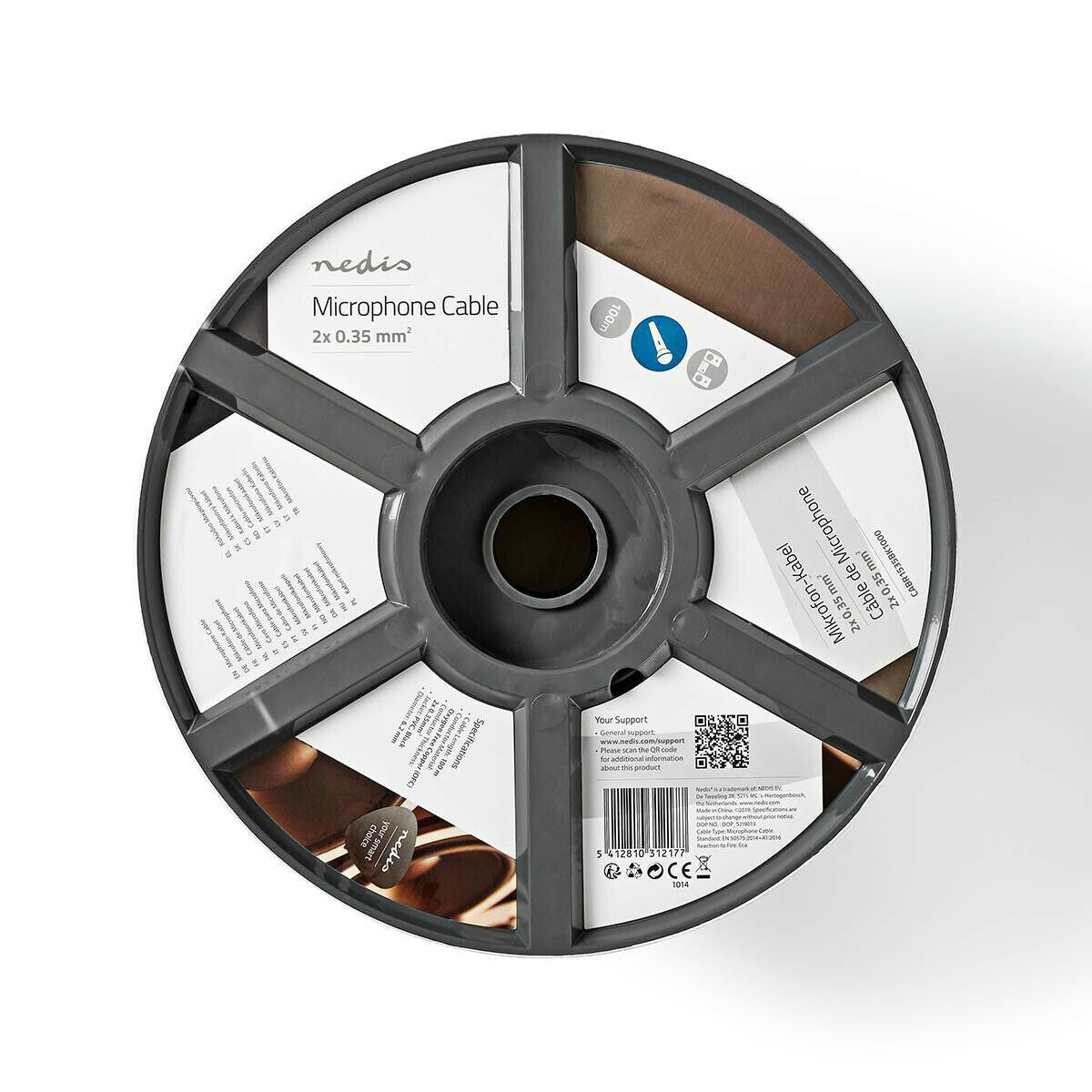 Nedis Microphone Cable | 2 x 0.35 mm² | Copper | 100.0 m | Round | PVC | Black | Reel