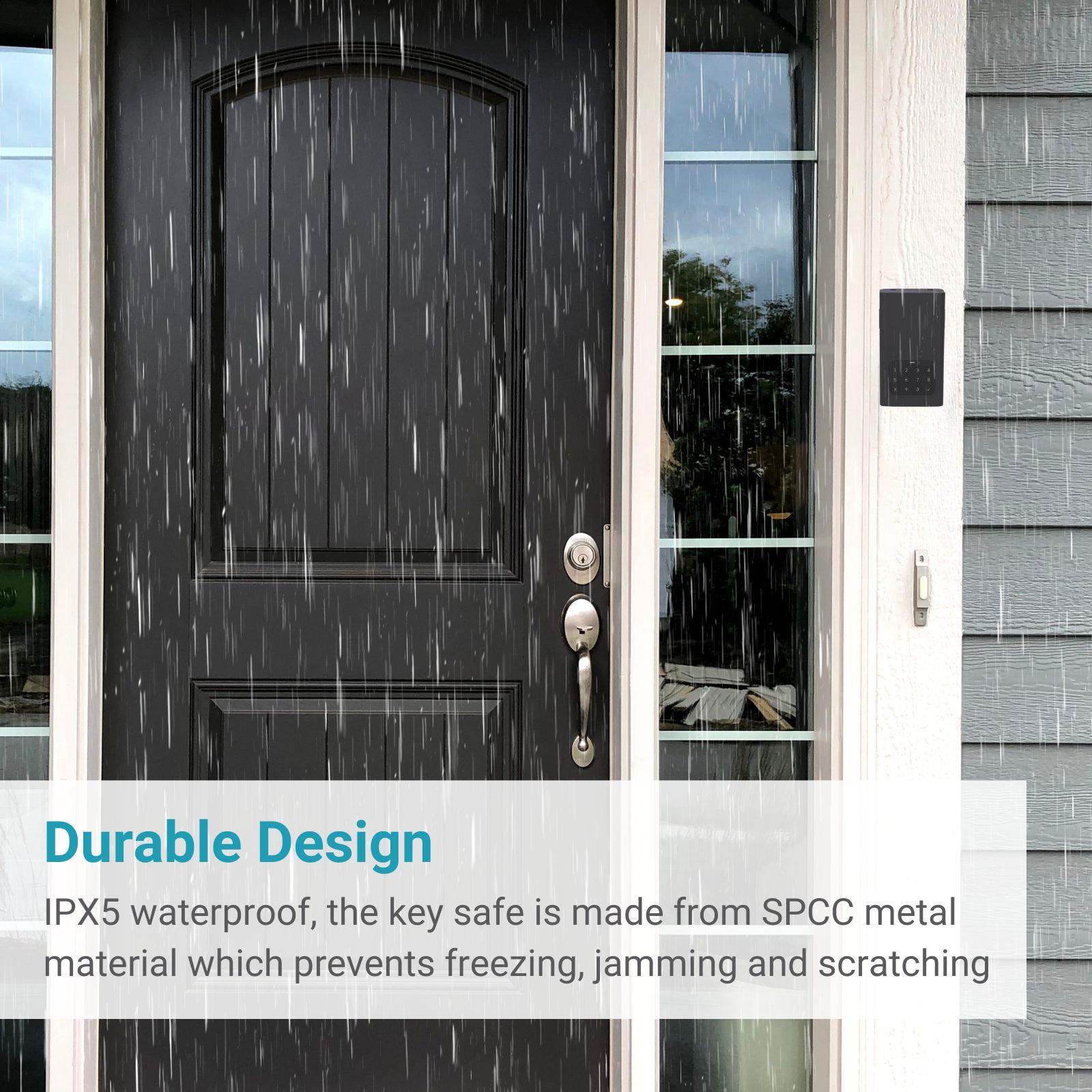 The Nedis Smart Bluetooth Keybox is designed to be user-friendly with digital buttons for easy access. It's made of premium and durable SPCC metal material, making it resistant to scratches, freezing, and jamming. With an IPX5 waterproof rating, it is designed to withstand any weather conditions.