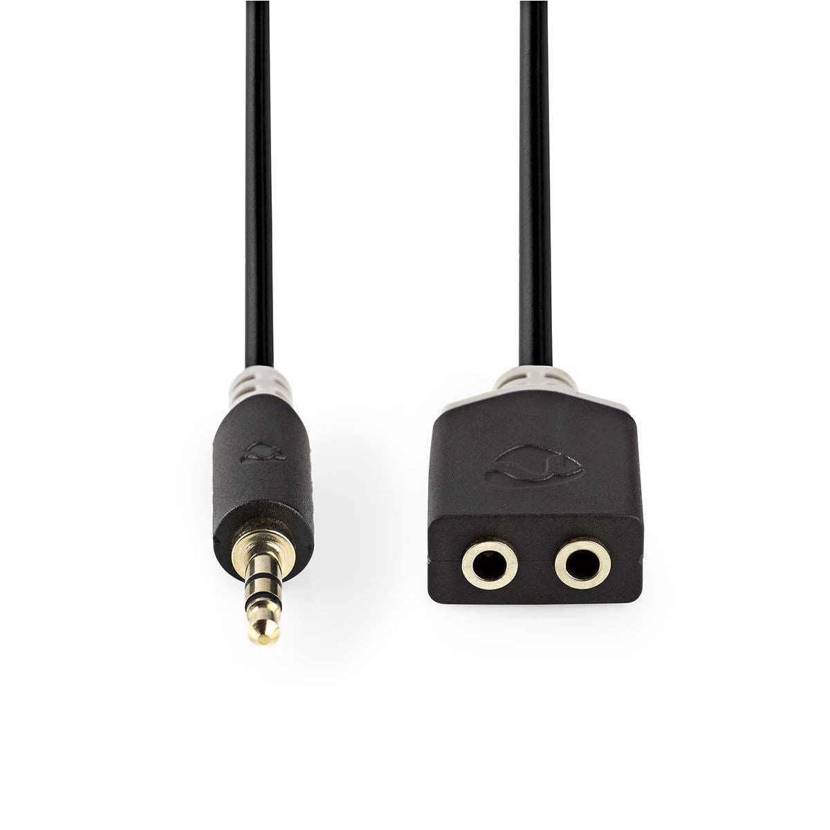 Nedis Stereo Audio Cable | 3.5 mm Male | 2x 3.5 mm Female | Gold Plated | 0.20 m | Round | Anthracite | Box