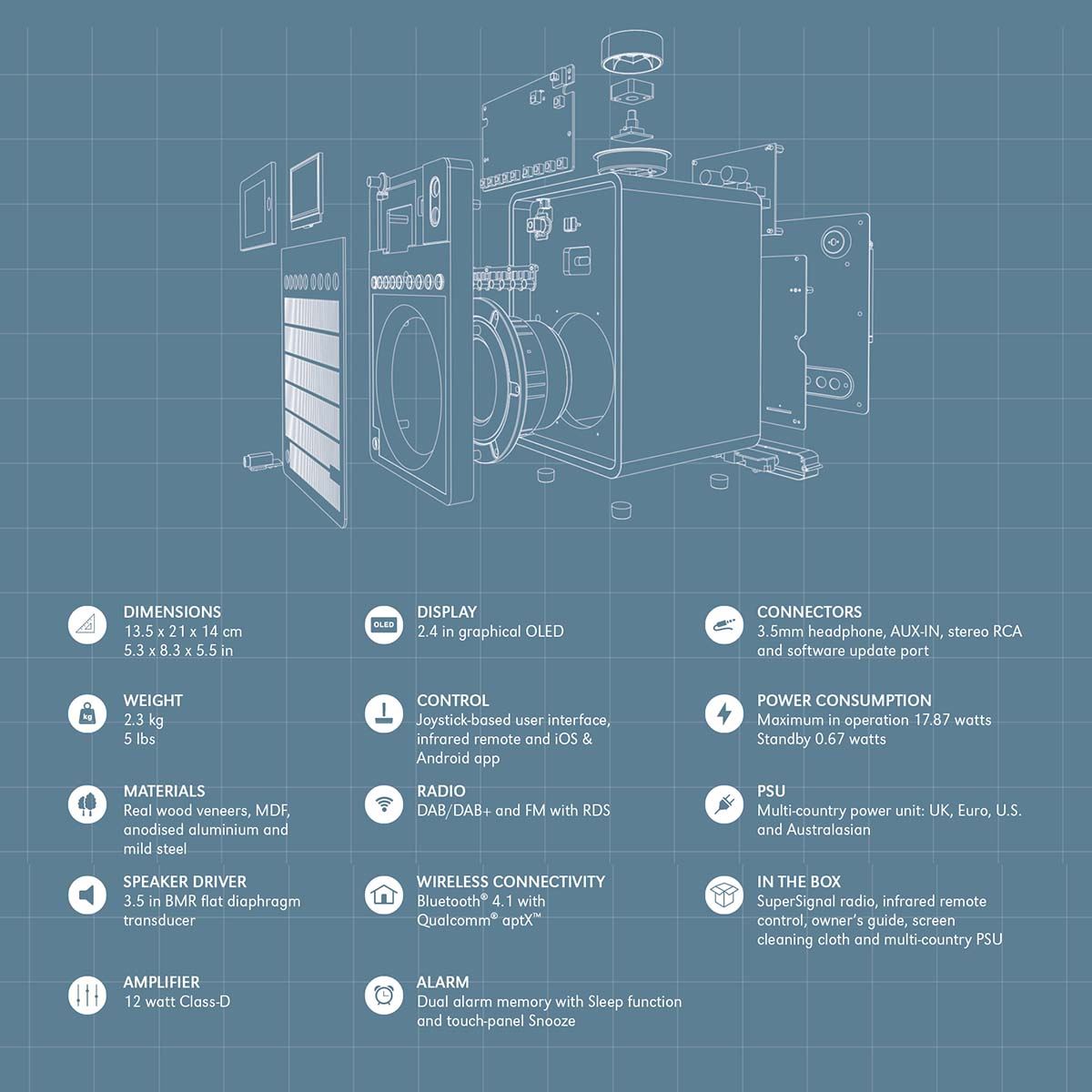 The Revo SuperSignal is a compact DAB+/FM luxury radio manufactured from the highest quality materials with the latest technology for maximum music enjoyment. The dual tuner can receive both digital radio signals via DAB+ and analog FM radio.